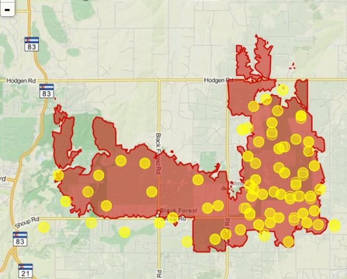 All week I’ve been trying to watch the fire’s progress in relation to where I take your home to be. It looked like it was okay up through last night, but I know how quickly fire can move, especially when I saw the “forest” in Black Forest was big evergreens. I also found the Sheriff’s Department list of homes and didn’t see anything familiar, so I kept my fingers crossed that much tighter.